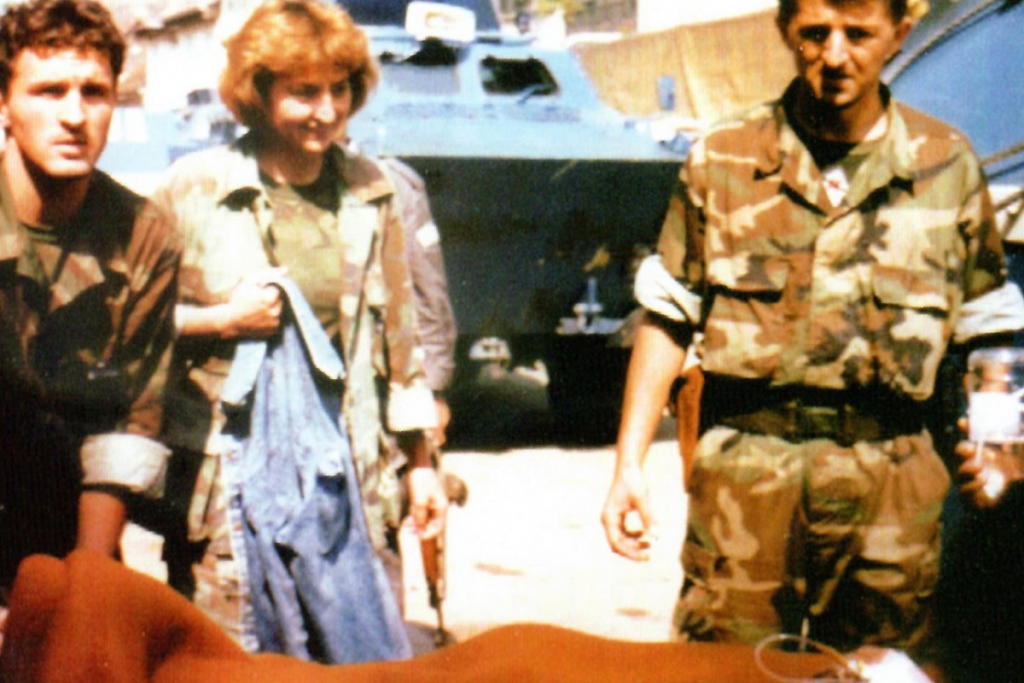Cover photo – Ante Jurilj, Đurđica Medvedovski and Mirko Ćuzić take care of a wounded guard in Hrvatska Kostajnica