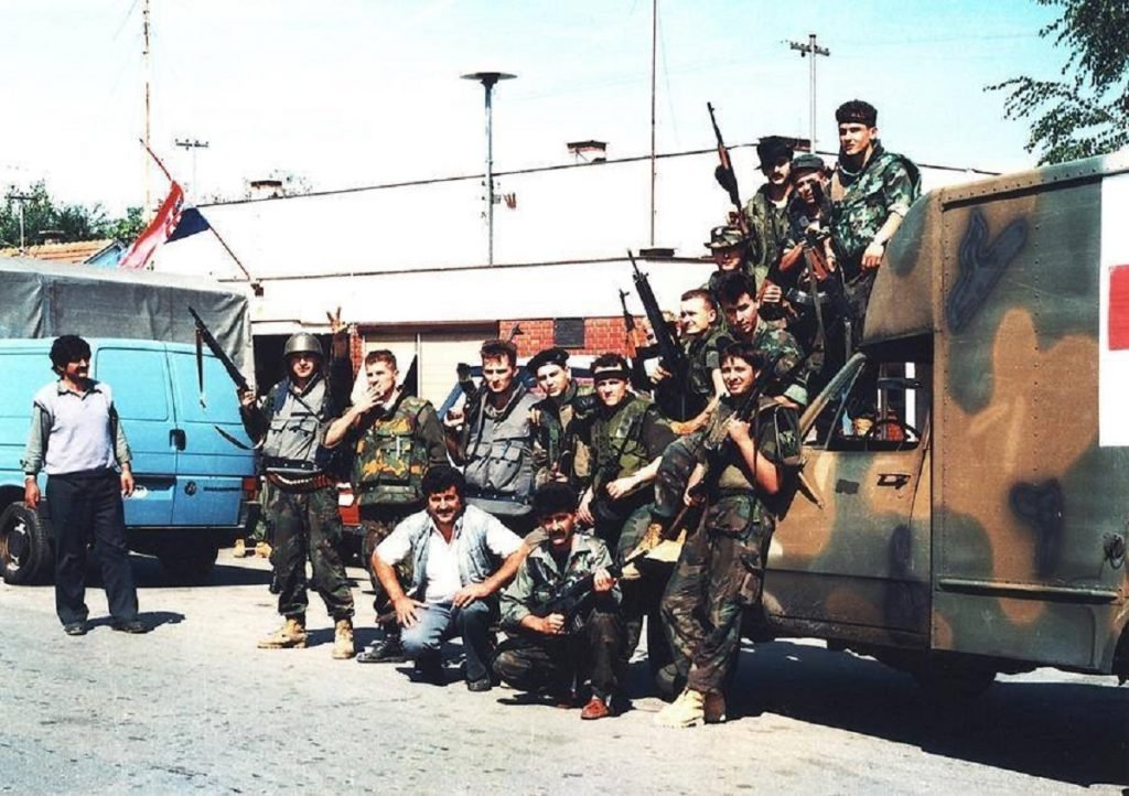 Naslovna fotografija – “Tigrovi” s domaćim braniteljima ispred Mjesne zajednice Alojzije Stepinac u Borovu naselju