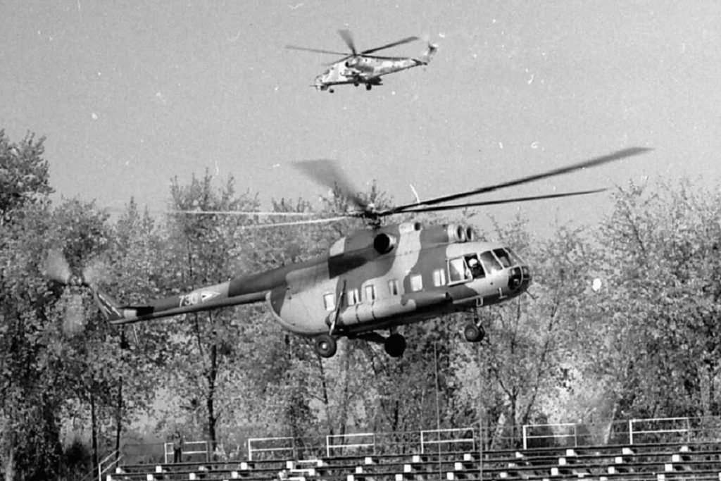 Naslovna fotografija – Jozsef Antall, mađarski premijer spušta se helikopterom na igralište u Barcsu, 28. listopada 1991.