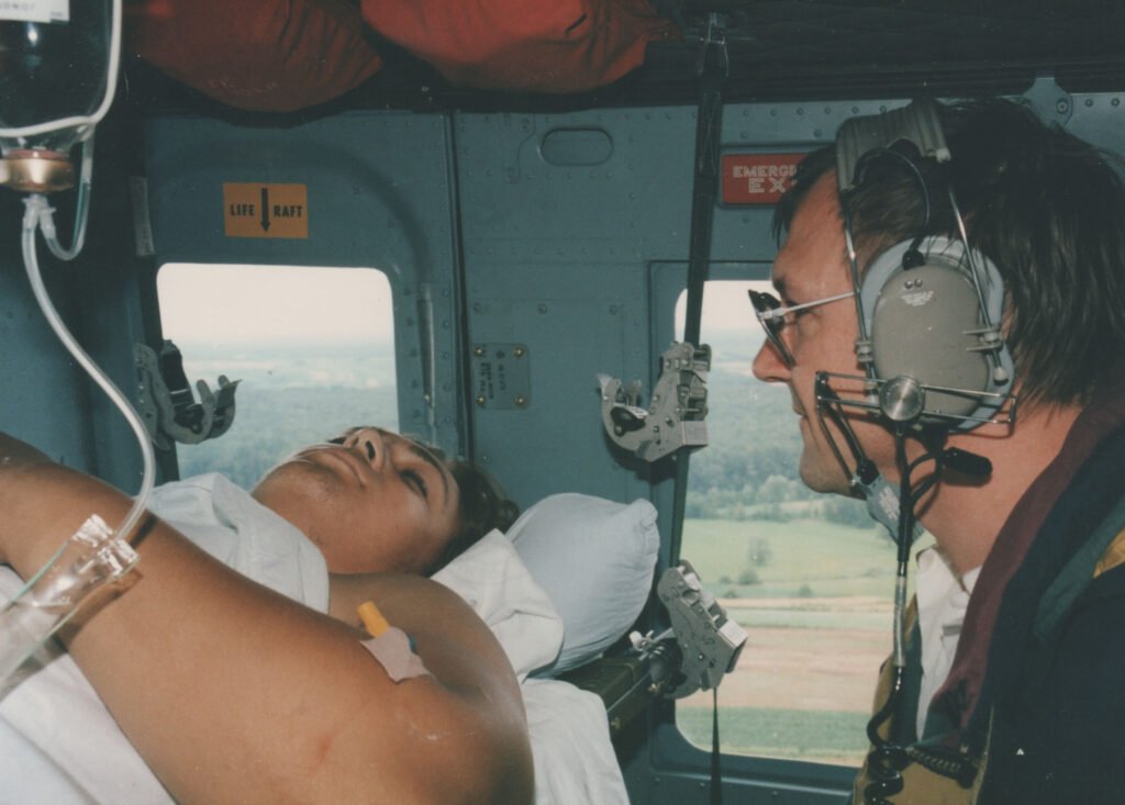 Kad su me prevezli u Aljmaš u dom zdravlja doktorica je zadužila dvije mlade žene koje su imale zadatak držati me budnim. Prema njenim riječima da sam zaspao ne bi se više probudio. Na nosilima su me odnijeli do Drave gdje je imao čamac čovjek koji mi je spasio život. Njega nažalost nikada nisam pronašao i ne znam mu ime. Bio je odličan. Dobro je poznavao tok Drave i gdje treba voziti uz obalu kako bi se izbjegle struje. Išlo je to dosta i brzo s obzirom da smo išli uzvodno, a rijeka je imala visok vodostaj. Zalijevali su me vodom kako ne bi zaspao i držali me na životu. Oko 9, pola 10 prijepodne stigao sam u osječku bolnicu.