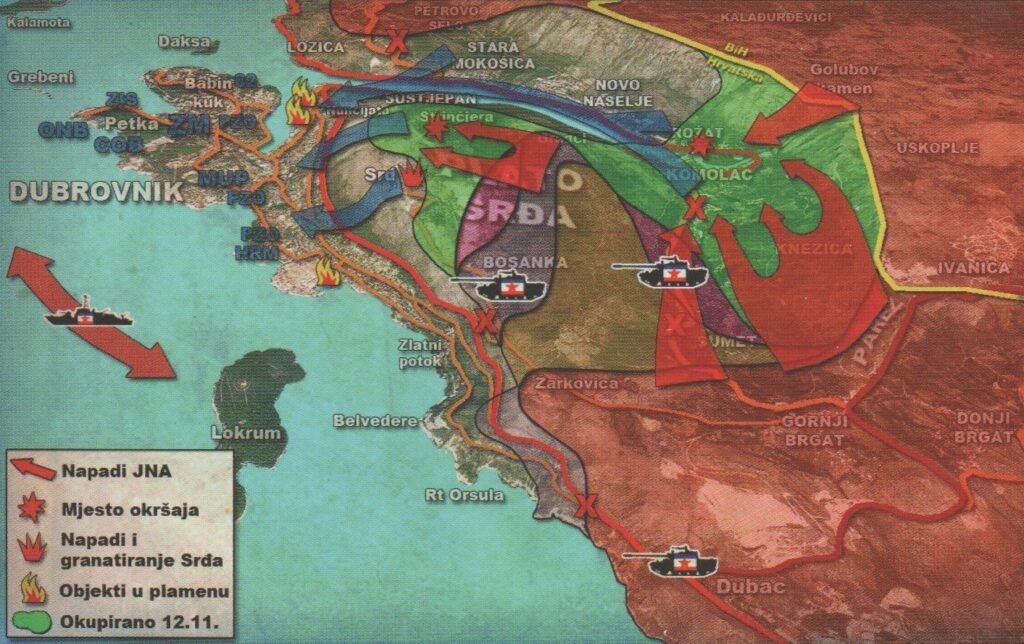 Bitka za Dubrovnik bila je jedna od najtežih u Domovinskom ratu, a geografska pozicija tog svjetskog bisera smještenog podno platoa Srđa odredila je da upravo Srđ bude ključna točka njegove obrane. Plato Srđa činile su tri važne otporne točke hrvatskih snaga – utvrda Strinčjera, vrh Srđ (utvrda Imperijal) te Bosanka. Četiri najteža vezana dana obrane Srđa, a samim time i Dubrovnika bila su od 9. do 12. studenog. Prvog dana JNA je okupirala Bosanku, a situacija je kulminirala zadnjeg dana kada su hrvatske snage bile primorane napustiti preostale dvije otporne točke – Imperijal i Strinčjeru.